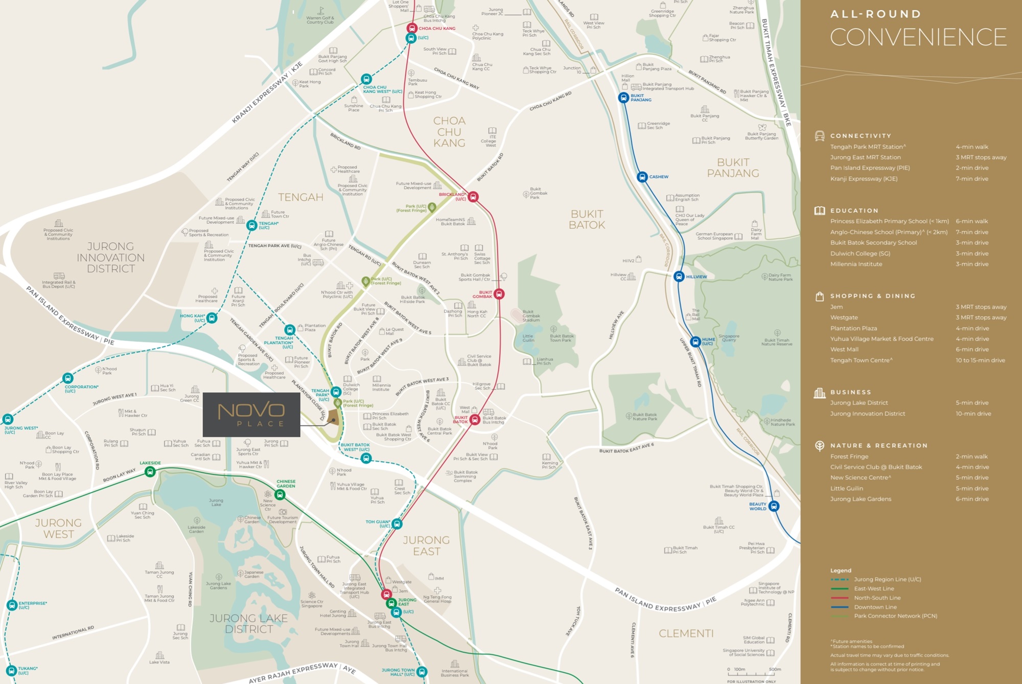 Novo Place EC is located at Plantation Close minute walk to Tengah Park MRT Station (JE 2). The station is situated next to the Plantation Edge I & Plantation Edge II housing estate, as well as Dulwich College (Singapore) across Bukit Batok Road. The station is targeted for completion and opening in Year 2028.